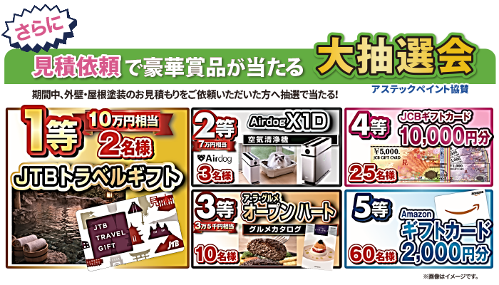 期間中(4/1~5/31)外壁・屋根塗装のお見積もりをご依頼いただいた方を対象に、