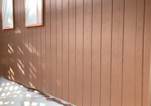 お問い合わせ時点で「つやつやしたくない」というご要望をいただいていましたが、私としても、元々の建物がスタイリッシュだったこともあり、それを活かしたいと考えていたので、イメージが一致しました。艶消し塗料の施工はこれまでも行ってきましたが、今回はサイディングが木目調の柄だったので綺麗にでると確信していました。