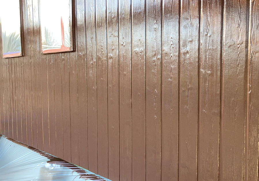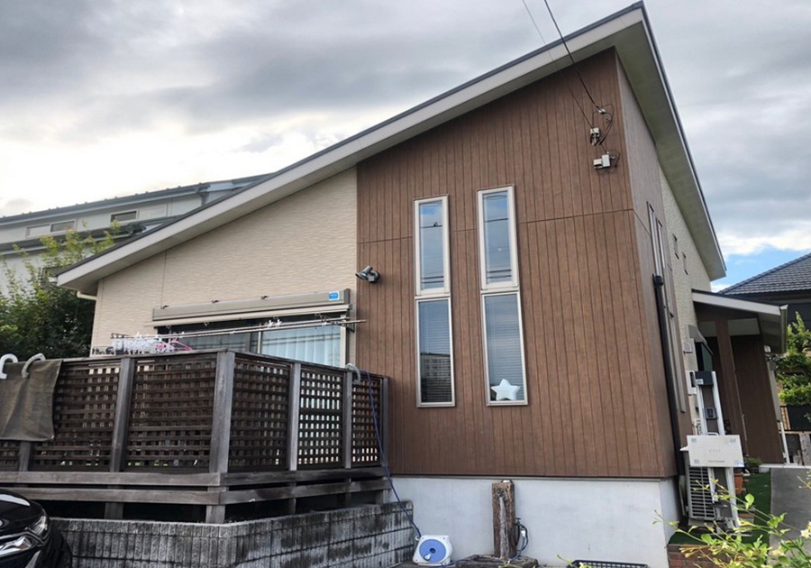 お問い合わせ時点で「つやつやしたくない」というご要望をいただいていましたが、私としても、元々の建物がスタイリッシュだったこともあり、それを活かしたいと考えていたので、イメージが一致しました。艶消し塗料の施工はこれまでも行ってきましたが、今回はサイディングが木目調の柄だったので綺麗にでると確信していました。