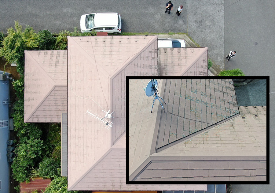 現場調査では、多くの屋根のひび割れを確認いたしました。